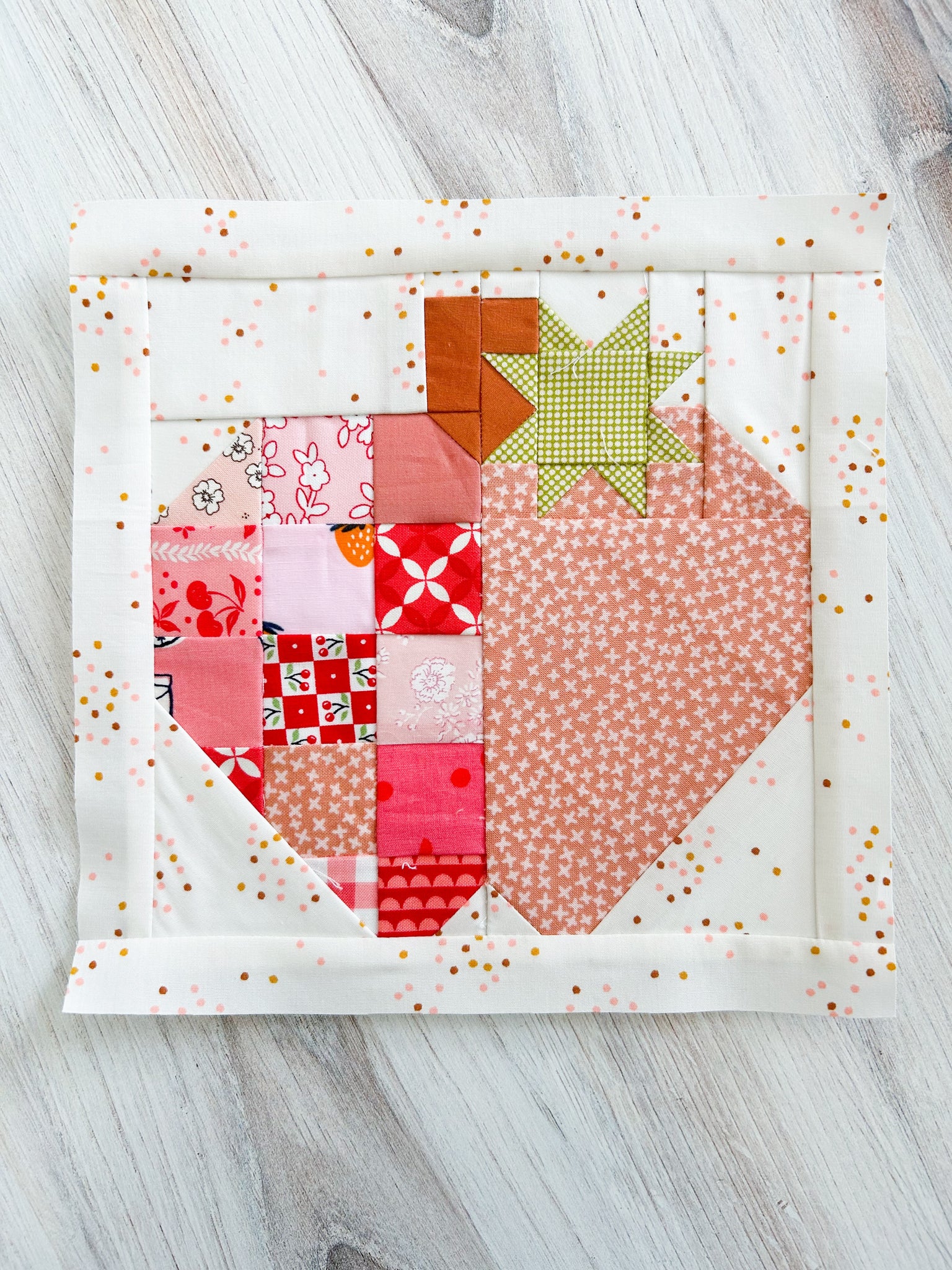 The pattern comes in (4) sizes, 3", 5", 7", and 10" finished squares.